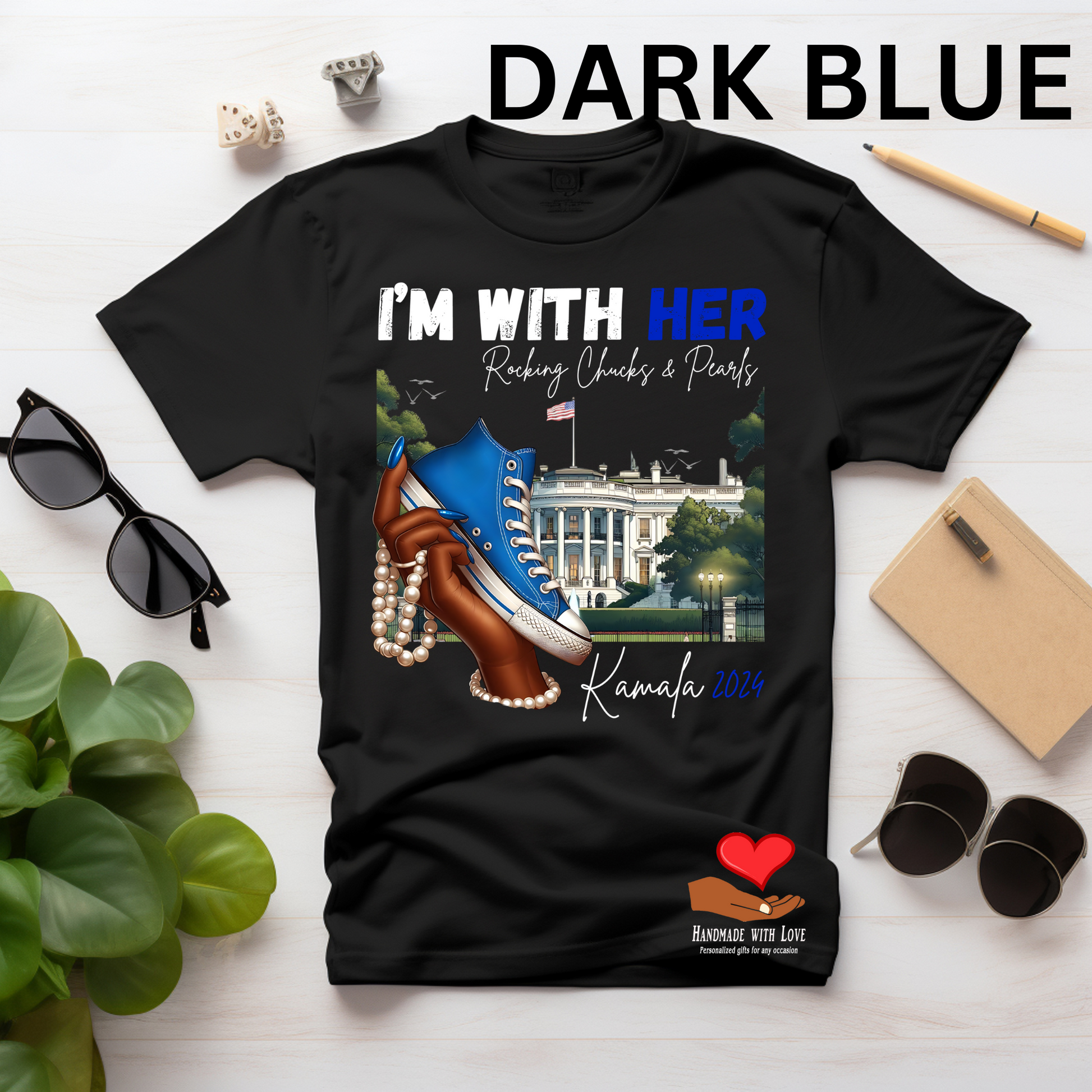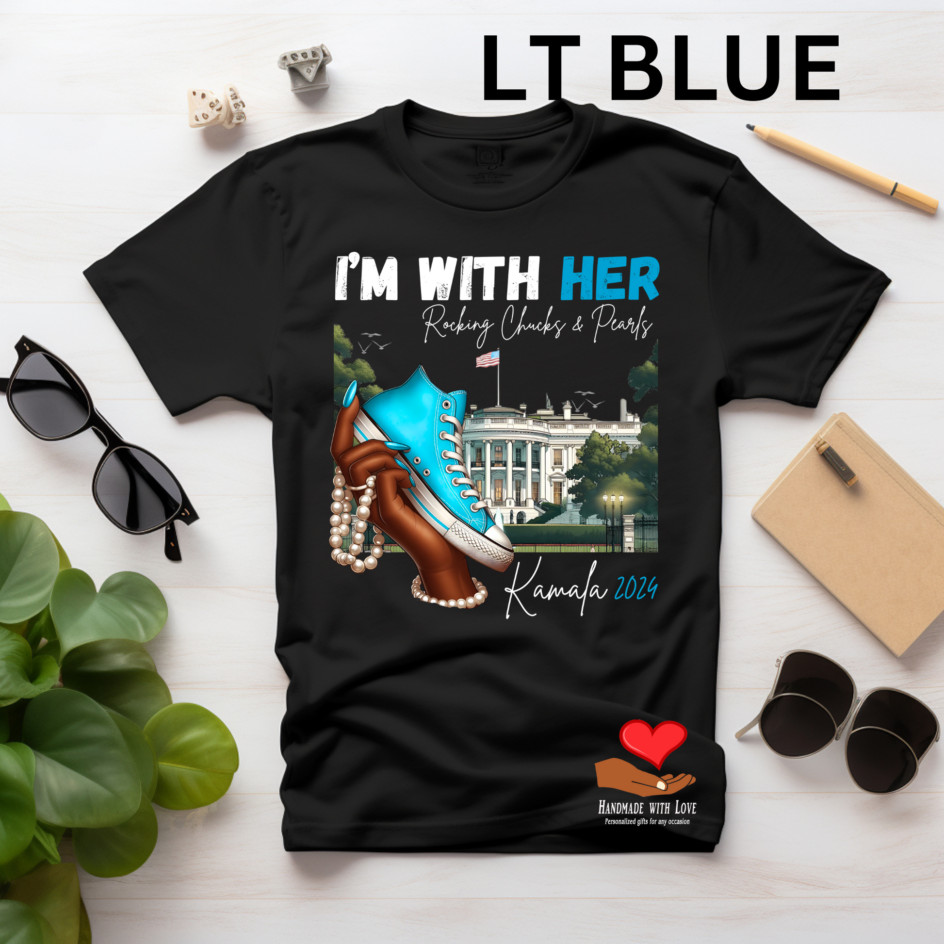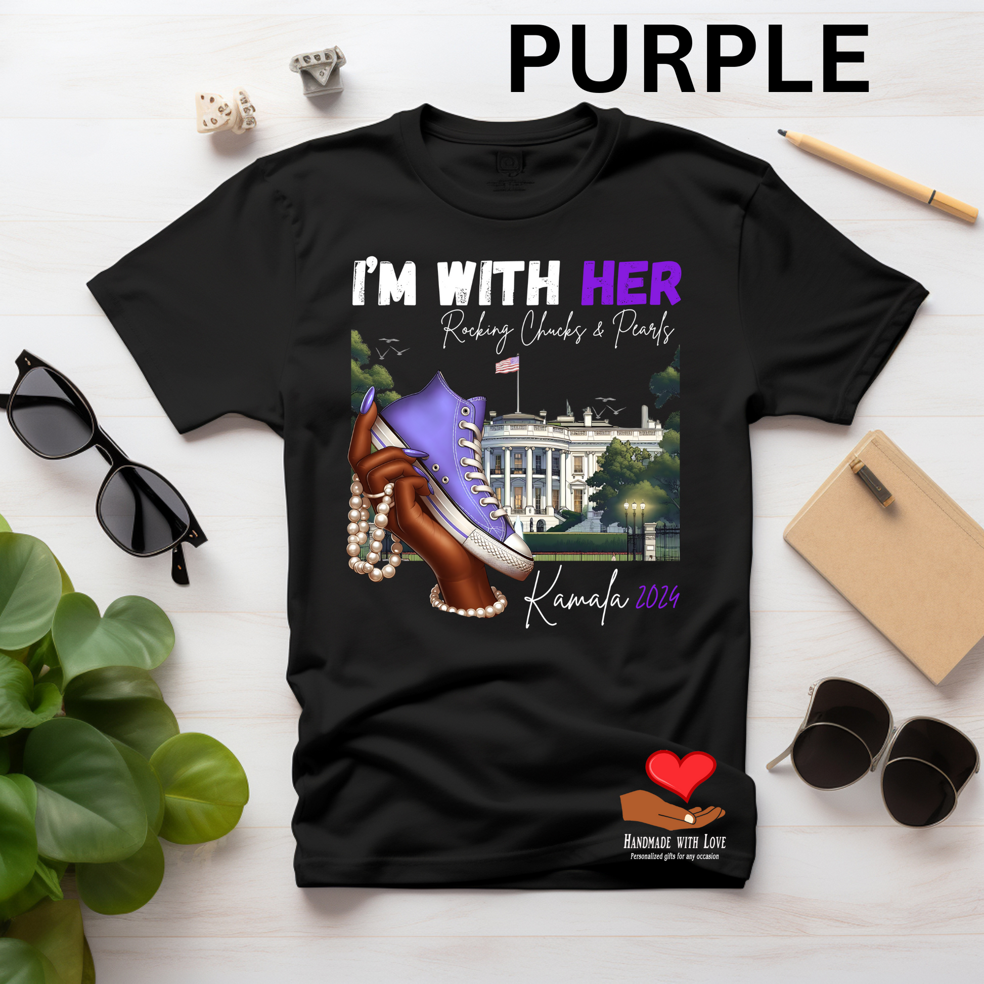 I'm With her T-Shirt. Show your support for Madame Vice President Kamala Harris in her quest to become the first Female president of the United States of America.