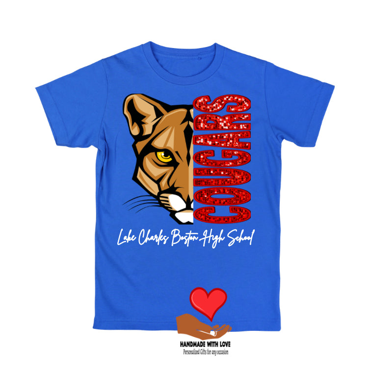 Lake Charles Boston Cougars Faux Sequins School Spirit Shirt
