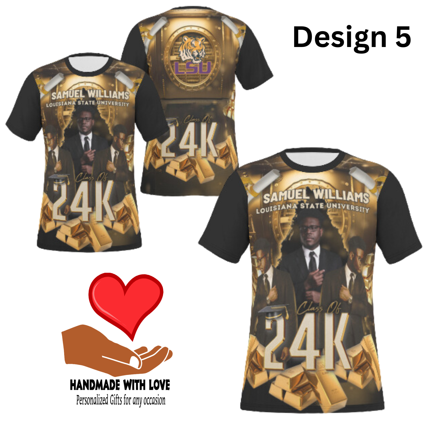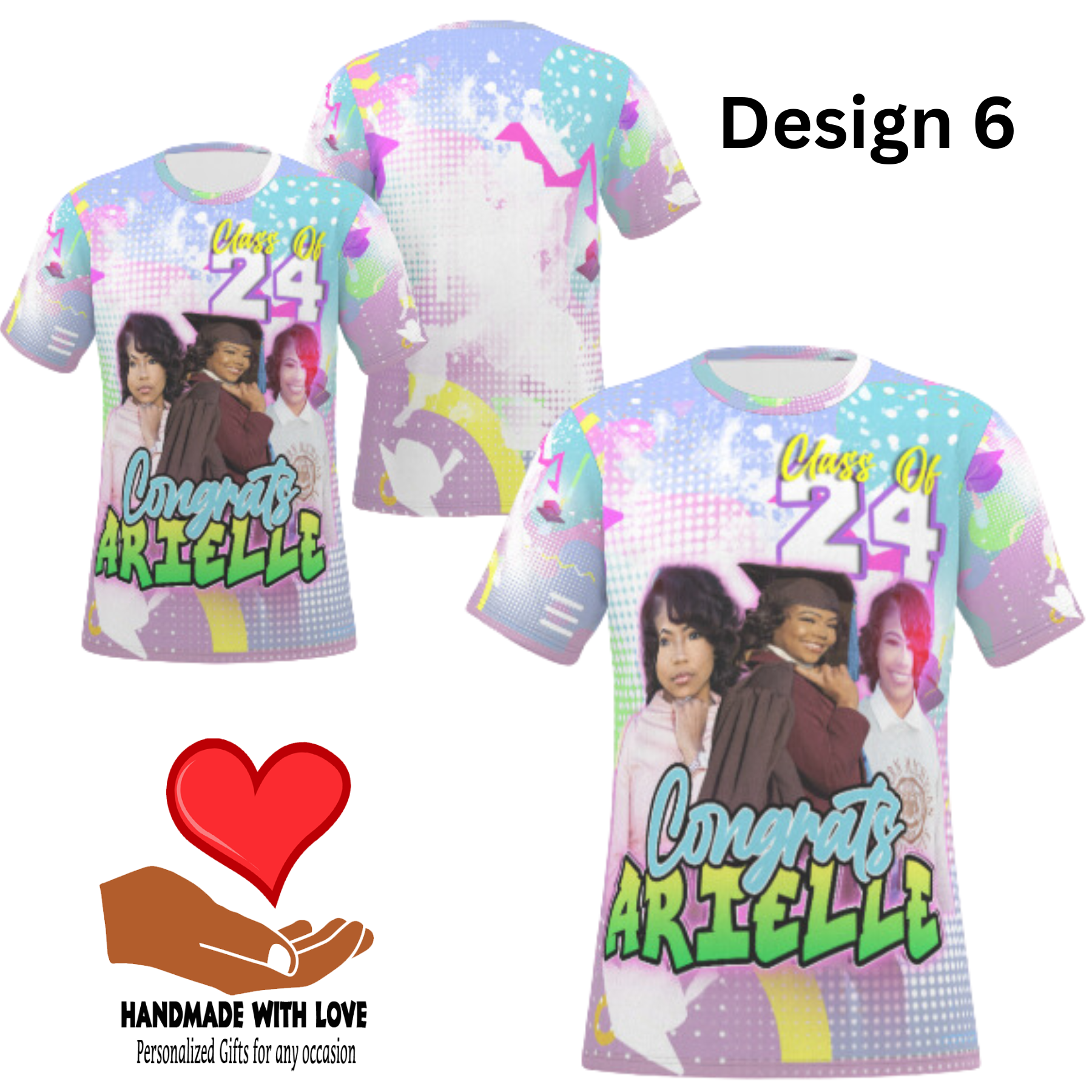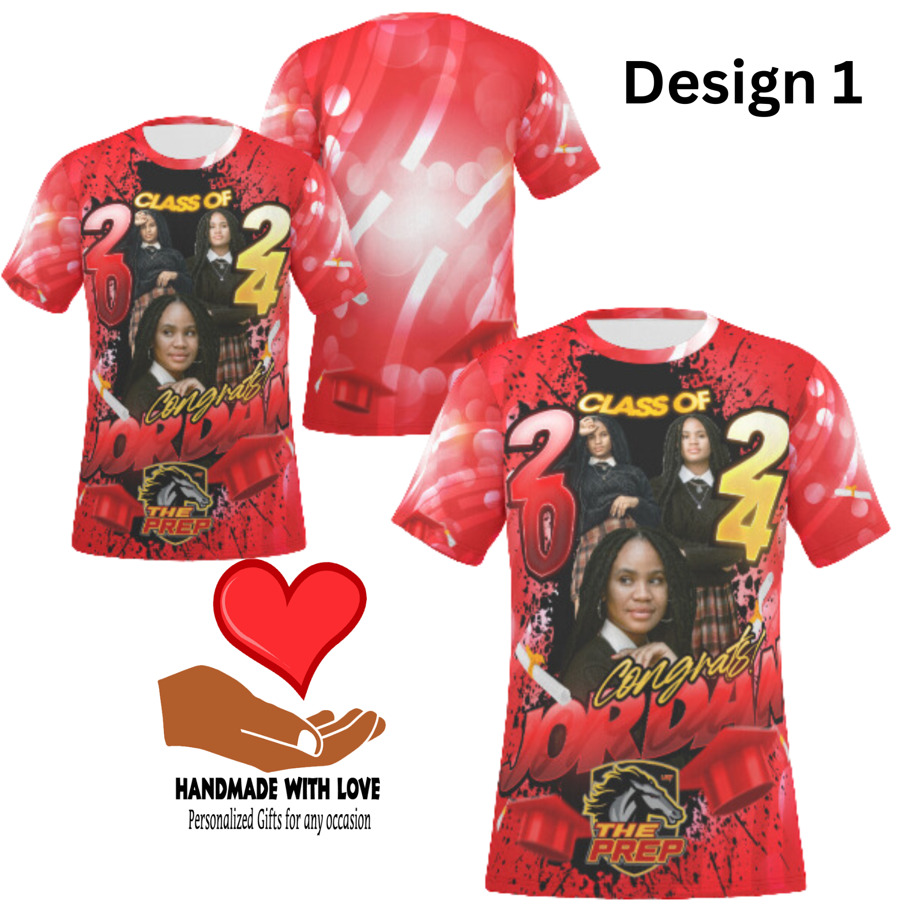 **This order is for pre-order only!!! Please allow 3-4 weeks for processing and shipping/pickup. Additionally, please provide high-resolution images to ensure the best quality shirt. No touch-ups or adjustments will be done to poor quality photos. All sales are FINAL!! Custom Photo graduation shirts. All local high schools and colleges are available and if school is not shown, please feel free to provide us with your school color and mascot so that we can create a shirt for you.