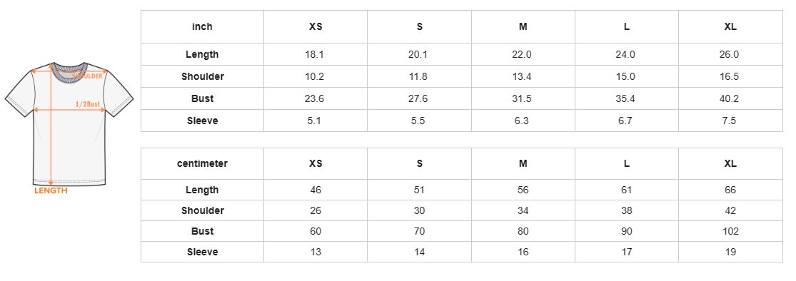 Shirts come in unisex sizes, lightweight with a cotton feel and runs fairly true to size. See sizing chart in photos.