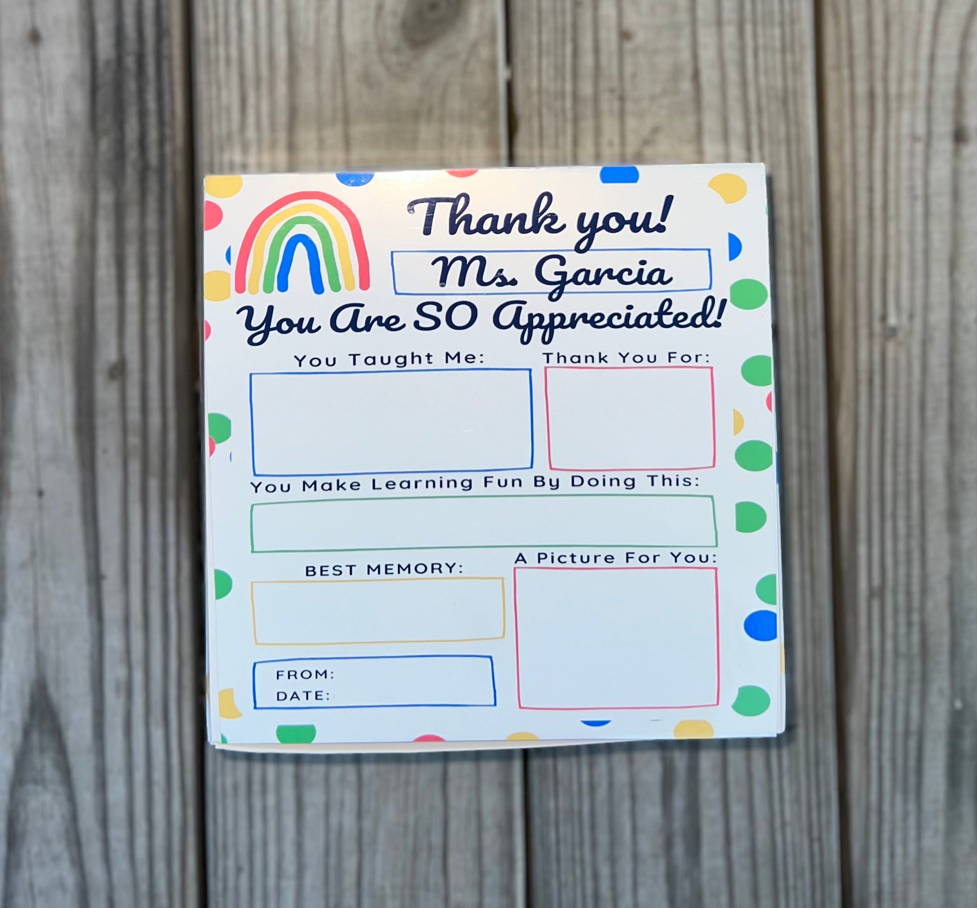 Note: Please add teacher's name and school name in the personalization box when ordering.