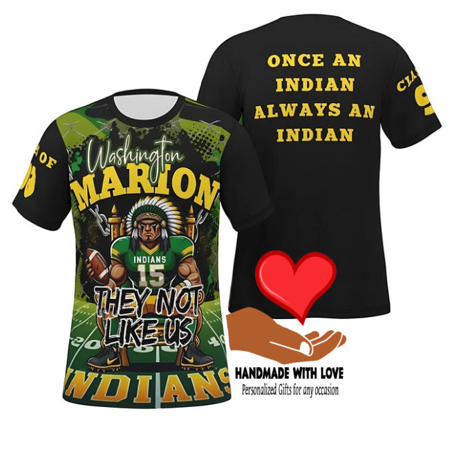 Represent Washington Marion High School with our original designed all over printed shirt. Our unisex sized shirts are made of 95% polyester and 5% spandex, giving it a lightweight feel.